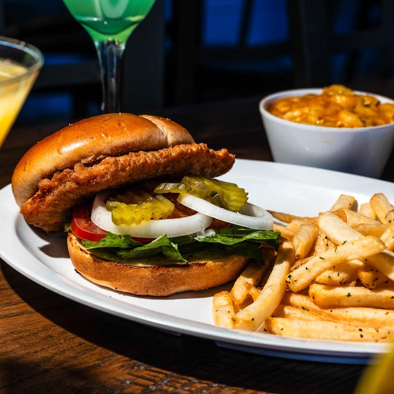 Lettuce, tomato, onion, pickle, mustard, served on toasted bun.